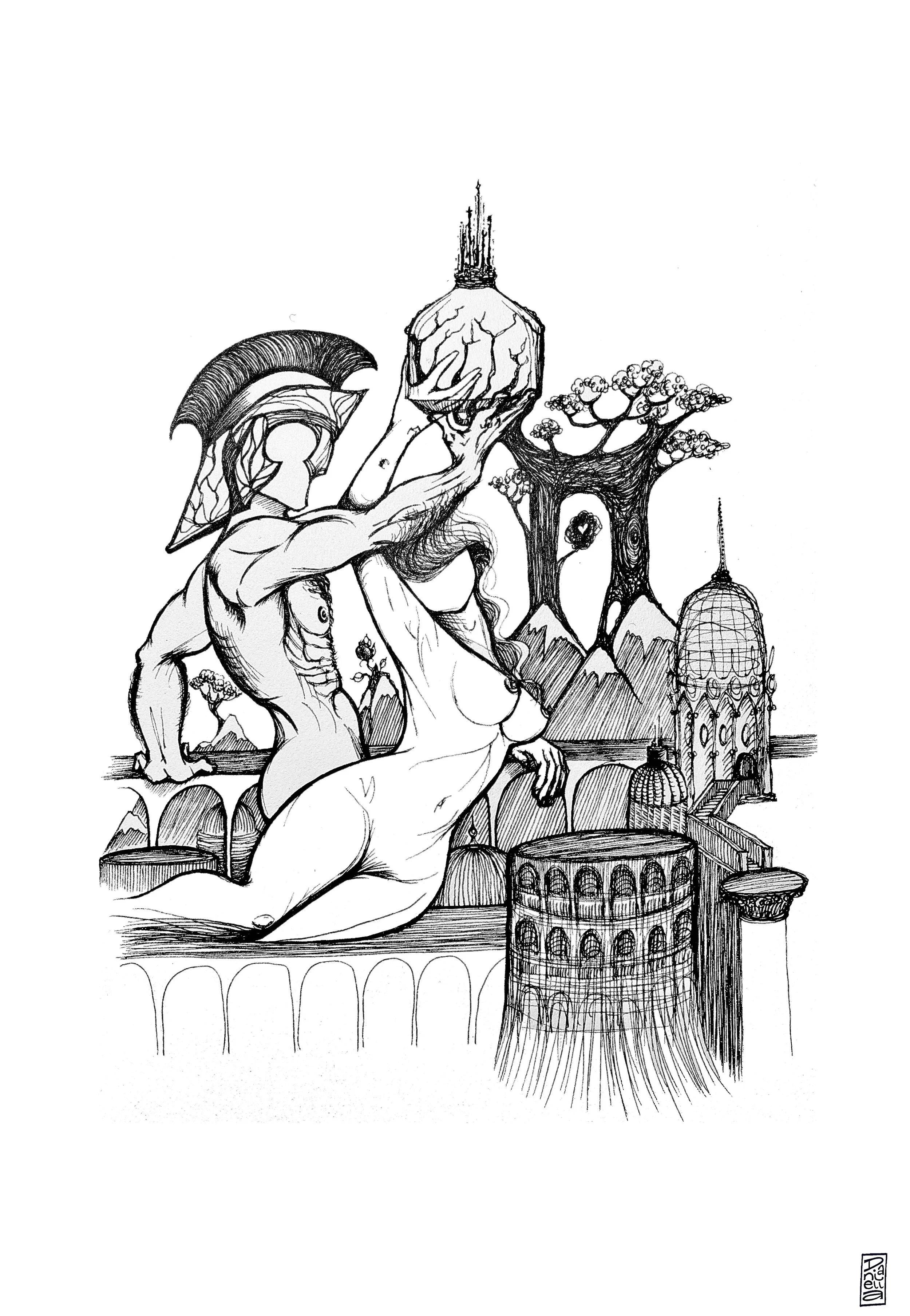 “The Holy Trinity”, 2023, fine line ink pen on white cartridge paper.